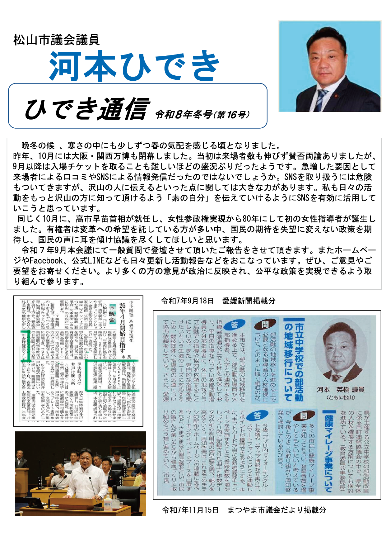 松山市議会議員 環境企業委員長